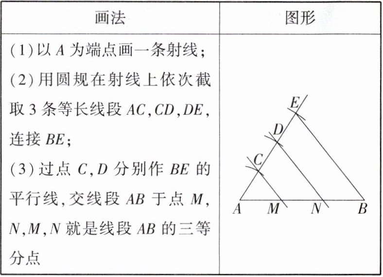 1.新尺规作图「2023江苏常州中考」小明按照以下步骤画线段AB的三等分点: