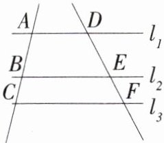 3.「2025江苏江阴实验中学月考」如图,直线$l_1//l_2//l_3,$两直线AC和DF与$l_1,l_2,l_3$分别相交于点A,B,C和点D,E,F.下列各式中,不一定成立的是(