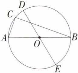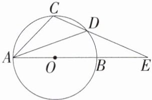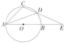 7.「2024江苏无锡中考,☆☆」如图,AB是$\odot O$的直径,$△ACD内接于\odot O,\widehat {CD}= \widehat {DB}$,AB,CD的延长线相交于点E,且$DE= AD$.