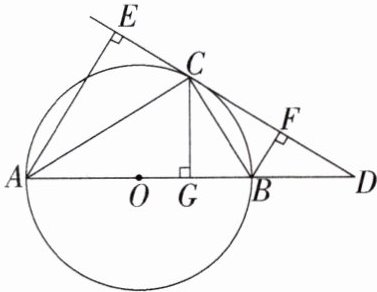 (2)分别过 A、B 两点作直线 CD 的垂线,垂足分别为 E、F,过 C 点作 AB 的垂线,垂足为 G,求证:$CG^{2}= AE\cdot BF$.