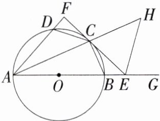 2.「2024 山东威海中考」如图,已知 AB 是⊙O 的直径,点 C,D 在⊙O 上,且 BC = CD.点 E 是线段 AB 延长线上一点,连接 EC 并延长交射线 AD 于点 F,∠FEG 的平分线 EH 交射线 AC 于点 H,∠H = 45°.