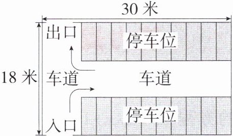 7. [2025 江苏扬州邗江期中,☆☆]如图所示的是某停车场的平面示意图,停车场外围的长为 30 米,宽为 18 米.停车场内车道的宽都相等,停车位总占地面积为 288 平方米,则车道的宽为 ______ 米.