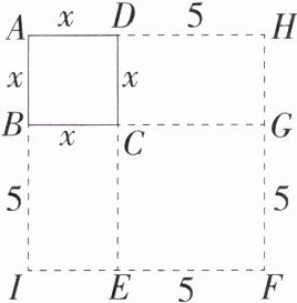 5. 新数学文化 [2025 江苏镇江期中,☆☆]数学家花拉子米在《代数学》中提到构造图形来寻找某个一元二次方程解的方法:先构造边长为 x 的正方形 ABCD,再分别以 BC,CD 为边作长方形 BCEI,