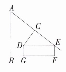 8.「2024河南天宏联考三模」集装箱作为国际贸易中最主要的运输工具之一,因其方便快捷、安全可靠等特点被广泛应用于全球货运领域,而集装箱搬运车则是为了更方便、更高效地对集装箱进行运输、搬运和堆放而设计的机械设备.如图所示的是该集装箱搬运车的简化示意图,测得$CE= 3m$,矩形$DEFG$为底盘,底盘的长和宽分别为$4m和0.9m$,$BG= 2m$,$AB\perp BF$,$DC\perp AE$,点$B$、$G$、$F$在同一水平面上,求集装箱顶部到地面的高度$AB$.(结果精确到$0.1m$,参考数据:$\sqrt{7}\approx 2.65$)