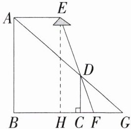 7.「2025江苏无锡惠山金桥双语实验学校月考」小明利用数学课所学知识测量学校门口路灯的高度.如图,$AB$为路灯主杆,$AE$为路灯的悬臂,$CD是长为1.8$米的标杆.已知路灯悬臂$AE与地面BG$平行,当标杆竖立于地面时,主杆顶端$A$、标杆顶端$D和地面上一点G$在同一直线上,此时小明发现路灯$E$、标杆顶端$D和地面上另一点F$也在同一条直线上(路灯主杆底端$B$、标杆底端$C和地面上点F$、点$G$在同一水平线上).这时小明测得$FG长1.5$米,路灯的正下方$H距离路灯主杆底端B的距离为3$米.请根据以上信息,求出路灯主杆$AB$的高度.