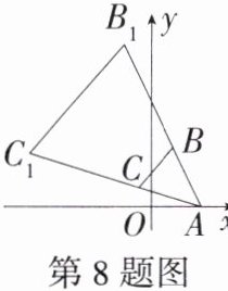 8.「2025江苏无锡外国语学校期中」如图,平面直角坐标系中,$A(2,0),B(1,2),C(-1,1)$,以A为位似中心,把$△ABC$在点A左侧按相似比$1:3$放大,放大后的图形记作$△AB_{1}C_{1}$,则$C_{1}$的坐标为____.