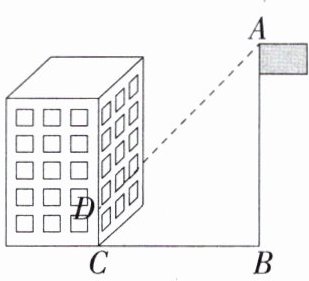 12.「2025江苏盐城东鸣湖实验学校期末」(10分)如图,在阳光下,某一时刻,旗杆AB的影子一部分在地面上,另一部分在建筑物的墙面上.小明测得旗杆AB在地面上的影长BC为16 m,在墙面上的影长CD为3 m.同一时刻,直立于地面长1 m的标杆的影长为0.8 m,求旗杆AB的高度.