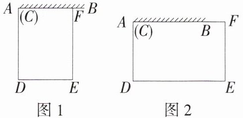 (2)如图 2,若矩形花园的一边由墙 AB 和一节篱笆 BF 构成,另三边由剩余篱笆围成,则花园面积能否为$ 110 m^2? $若能,求出 BF 的长;若不能,请说明理由.