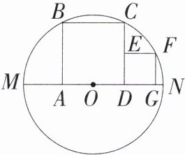 7.「★☆☆」已知MN为$\odot O$的直径,四边形ABCD,四边形EFGD都是正方形,小正方形的面积为16,则$\odot O$的半径为_____.