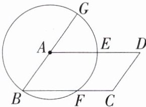 13. 「2025 江苏镇江宜城中学月考」如图所示,以$□ ABCD$的顶点 A 为圆心,AB 长为半径作圆,分别交 AD,BC 于点 E,F,延长 BA 交$\odot A$于 G.