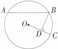 6. 「2025 江苏泰州姜堰期中,」如图,在$\odot O$中,$\overset{\frown}{AB}= 2\overset{\frown}{BC}$,且$BD\perp OC$,垂足为$D$。若$AB = 8$,$CD = 2$,则$\odot O$的半径为______。