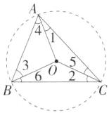 5. 「2024 江苏扬州仪征一模」如图,$ O $ 是 $ \triangle ABC $ 的外心,则 $ \angle 1+\angle 2+\angle 3= $____。