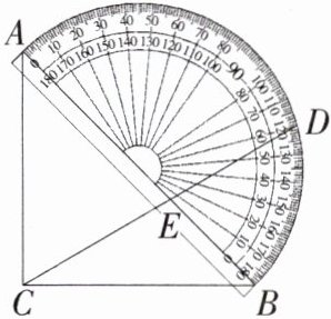 3.「2024江苏宿迁宿豫期中」如图,等腰直角三角尺ABC的斜边AB与量角器的0°刻度线重合,点D是量角器上120°刻度线的外端点(点D在弧AB上),连接CD交AB于点E,则∠CEB的度数是(