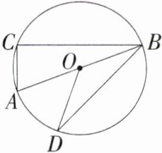 2.「2024山东泰安中考」如图,AB是⊙O的直径,C,D是⊙O上两点,BA平分∠CBD,若∠AOD= 50°,则∠A的度数为(