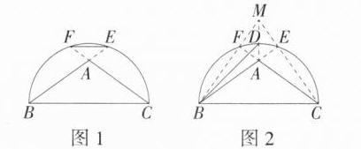 (2)在图②中以BC为边作一个45°的圆周角.