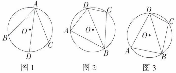 (3)如图3,四边形ABCD内接于$\odot O$,其中$AB= BC,AD⊥DC$,线段AD、CD、BD之间满足什么数量关系?请写出你的猜想,不需要证明.