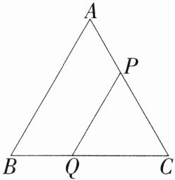 8.「2024江苏无锡锡山期中,☆☆」如图,等边$\triangle ABC$的边长为6cm,点P、点Q分别从点A、点B出发同时向点C以2cm/s的速度移动,到点C时停止。设运动的时间为t s。