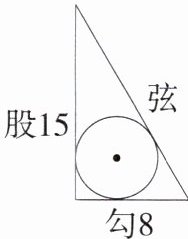 3.新考向数学文化「2023江苏镇江中考」《九章算术》中记载:“今有勾八步,股一十五步.问勾中容圆径几何?”译文:今有一个直角三角形,勾(短直角边)长为8步,股(长直角边)长为15步,问该直角三角形内切圆的直径是多少?书中给出的算法译文如下:如图,根据勾、股,求得弦长.用勾、股、弦相加作为除数,用勾乘股,再乘2作为被除数,商即为该直角三角形内切圆的直径,求得该直径等于