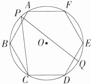 7.「2023四川内江中考,☆☆」如图,正六边形ABCDEF内接于⊙O,点P在⌢AB上,点Q是⌢DE的中点,则∠CPQ的度数为(