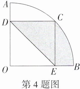 4.[2023四川广元中考]如图,半径为5的扇形AOB中,$∠AOB= 90^{\circ }$,C是$\widehat {AB}$上一点,$CD⊥OA,CE⊥OB$,垂足分别为D,E,若$CD= CE$,则图中阴影部分面积为 (