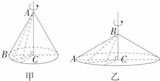 小亮观察后说:“甲、乙圆锥的侧面都是由三角尺的斜边 $AB$ 旋转得到的,所以它们的侧面积相等。”你认同小亮的说法吗?请说明理由。