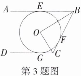 3.「2025江苏连云港赣榆期中」如图,直线AB、BC、CD分别与$\odot O$相切于点E、F、G,$AB// CD$,若$OB= 16cm,OC= 12cm$,则$BE+CG$的值等于(
