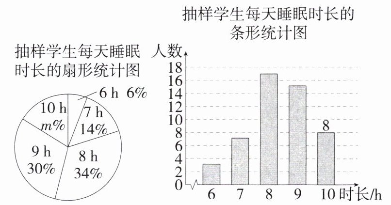 (2)$\frac{6×3+7×7+17×8+15×9+8×10}{50}=8.36$(h).答:抽样学生每天睡眠时长的平均数为8.36 h.