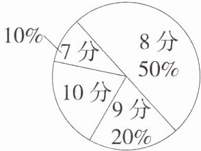 (1)样本中男生检测成绩为10分的学生人数是$10×(1-10\% -50\% -20\% )=2$.因为8分所占的百分比最多,所以众数为8分.故答案为2;8.
