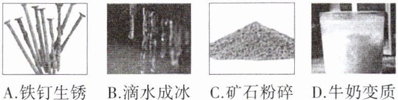 4. [2024 甘肃临夏州中考改编] 物理变化和化学变化的区别在于是否有新物质的生成. 某学习小组在延时课上制作了A, B, C, D四张卡片, 四张卡片除图片内容不同外, 其他没有区别, 放置于暗箱中摇匀.