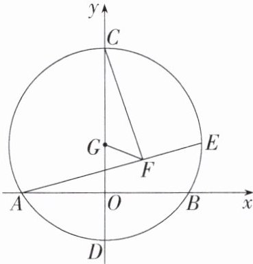 18.如图,以$G(0,2)$为圆心,4为半径的圆与x轴交于A、B两点,与y轴交于C、D两点,点E为$\odot G$上一动点,$CF⊥AE$于点F,则线段FG的长度的最小值为____.