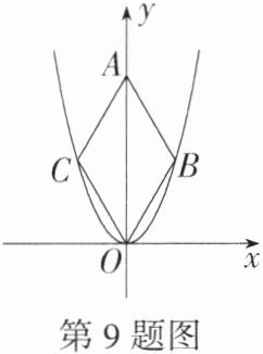 9. 「2024江苏苏州工业园区星海实验中学月考」二次函数$y= \sqrt{3}x^{2}$的图像如图,点$A在y$轴的正半轴上,点$B$,$C在二次函数y= \sqrt{3}x^{2}$的图像上,四边形$OBAC$为菱形,且$\angle ACO = 120^{\circ}$,则菱形$OBAC$的面积为______。