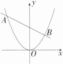 10. 「2024江苏淮安北京路中学月考」如图,直线$AB$:$y = kx + 3过点(-2,4)且与抛物线y= \frac{1}{2}x^{2}交于A$,$B$两点。