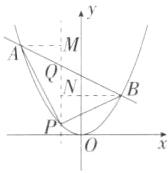 (2)过点P作直线$PQ// y$轴,交AB于点Q,过点A作$AM⊥PQ$,垂足为M,过点B作$BN⊥PQ$,垂足为N,如图所示.