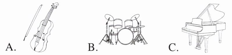 |What|· It started with a piece of 13 .· The students of Class Two put on a piano duet(二重奏).· The students of Class Three and Class Four put on a 14 .· The students of Class Five performed a short play.|