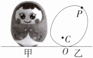 3. 新特色 中华优秀传统文化 “不倒翁”是一种古老的中国儿童玩具,最早记载出现于唐代。其特点是一经触动就会摇摆,并可在自身重力作用下恢复直立状态。图甲为一“不倒翁”静置于水平面的实物图,图乙为其受到拉力 F 后处于倾斜静止状态的简化示意图。如果 C 为“不倒翁”的重心,P 为拉力 F 作用点,请在图乙中画出此时“不倒翁”所受的重力 G、支持力 N、最小拉力 F 及其力臂 L。