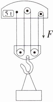 14.[2024江苏苏州中考] 某起重机的滑轮组结构示意如图所示,其最大载重为5 t。起重机将3600 kg的钢板匀速提升到10 m高的桥墩上,滑轮组的机械效率为80%。不计钢丝绳的重力和摩擦,g取$10N/kg$。求: