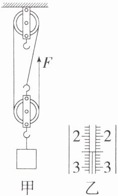 13.[2022江苏南通中考] 用图甲滑轮组做“探究动滑轮的重对滑轮组机械效率的影响”实验。实验中把不同的磁铁吸附在动滑轮边框上以改变滑轮的重,每次实验都匀速拉动绳端使物体上升10 cm。不计绳重,实验数据如表。