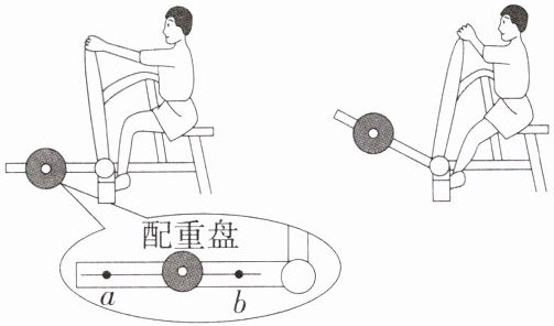 变小 a 解析 由题意知,人用始终与把手垂直的力缓慢向后将把手拉至身体两侧,动力臂不变,阻力大小等于配重盘的重力,即阻力不变,转动过程中阻力臂会变小,根据杠杆的平衡条件知,拉力会变小;若要增加训练强度,应将配重盘向a端移动,增大阻力臂。