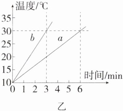 (3)纠正错误后进行实验得出了水和煤油的温度随时间变化的图像,如图乙所示。