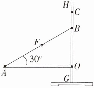 在Rt△AOE中,∠A = 30°,则L = 1/2 OA = 0.15m,根据杠杆的平衡条件可得,FL = G×1/2 OA,则F = G×1/2 OA/L = 5N×1/2×0.3m/0.15m = 5N;将细线一端的固定点由B点改至C点,动力臂增大,阻力臂和阻力不变,根据杠杆平衡条件可知,动力F减小。