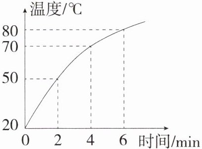 (2)由图可知,水在2~4 min温度升高Δt=70℃-50℃=20℃,水吸收的热量Q_{吸}=cm_{水}Δt=4.2×10³J/(kg·℃)×10 kg×20℃=8.4×10⁵J。