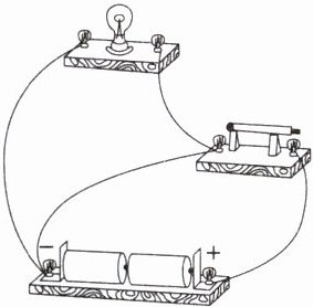 ,打开灯罩,可看到电路中的另一个基本元件是电源
