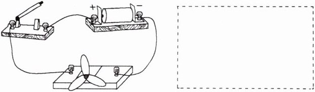 解析 由实物图知,电路中只有电风扇电动机一个用电器,开关接在电源正极与电动机之间,电路图如图所示。