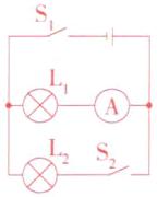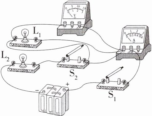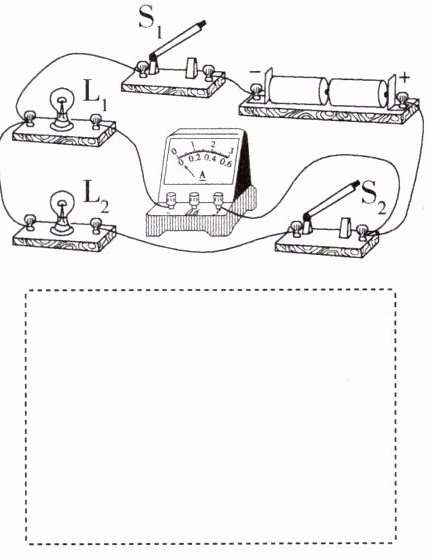 解析 由实物图知,两灯并联,开关S₁在干路上,S₂在L₂所在支路上,电流表串联在L₁所在支路上。