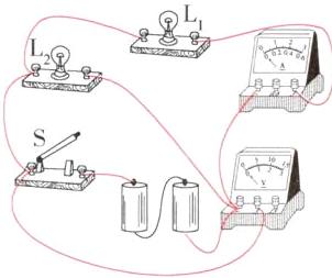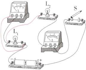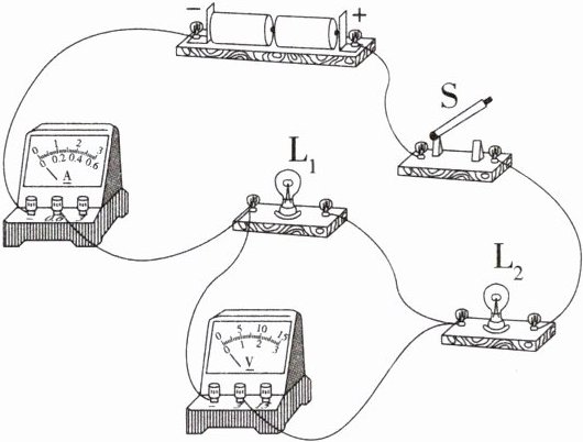 解析 由实物图知,开关、L₂、L₁、电流表串联,电压表并联在L₁两端。