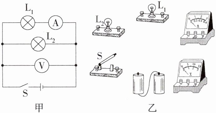 解析 由电路图知,两灯并联,开关S在干路上,电压表测电源电压,电流表测通过L₁的电流;电源由两节干电池组成,电源电压为3 V,所以电压表选用小量程;由于不知道电路中电流的大小,因此电流表选用大量程。