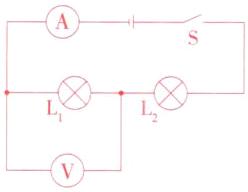 解析 用电压表测量串联电路中灯L₂两端的电压,两灯要串联,同时电压表要与L₂并联。