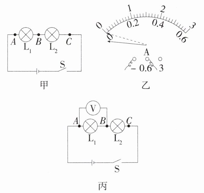 16. 小明要进行“探究串联电路电流和电压特点”的实验,实验电路图如图甲所示。实验器材:两节干电池、多个小灯泡、一个电压表和一个电流表、一个开关和若干导线。
