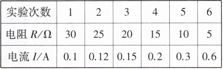 2.用电压表和电流表等器材探究电流与电阻的关系,电源电压为4.5V,所用定值电阻的阻值分别为5Ω、10Ω、15Ω、20Ω、25Ω、30Ω。