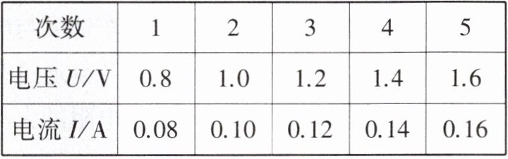 |电压U/V|0.8|1.0|1.2|1.4|1.6|